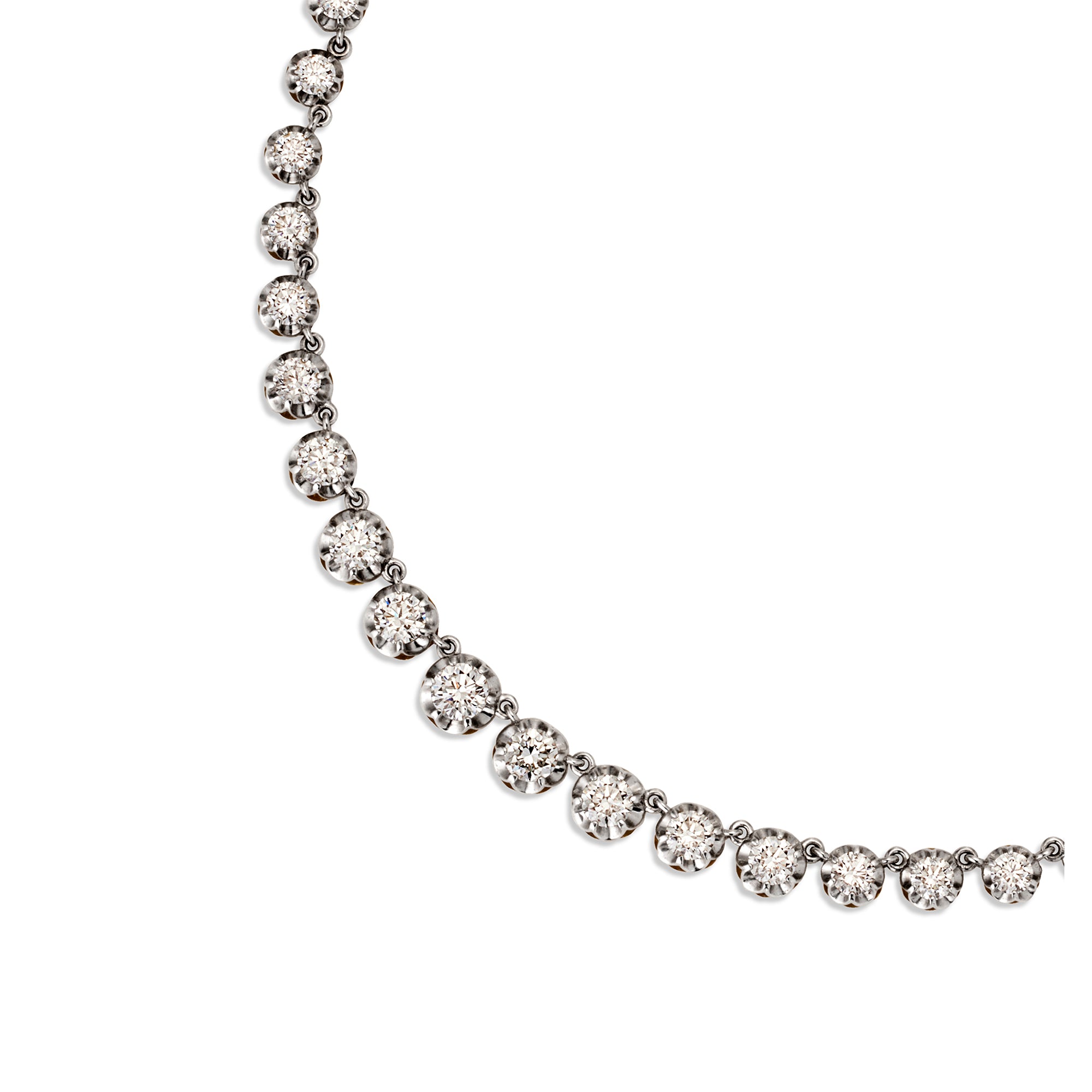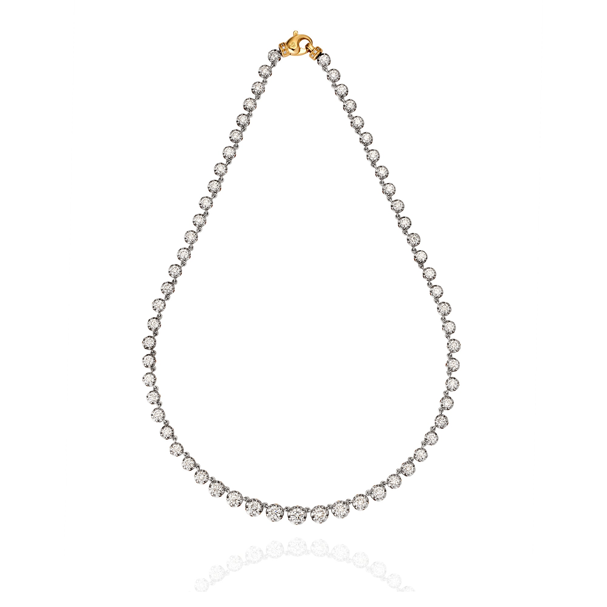 18ct Two Tone Graduated Diamond Scallop Tennis Necklace