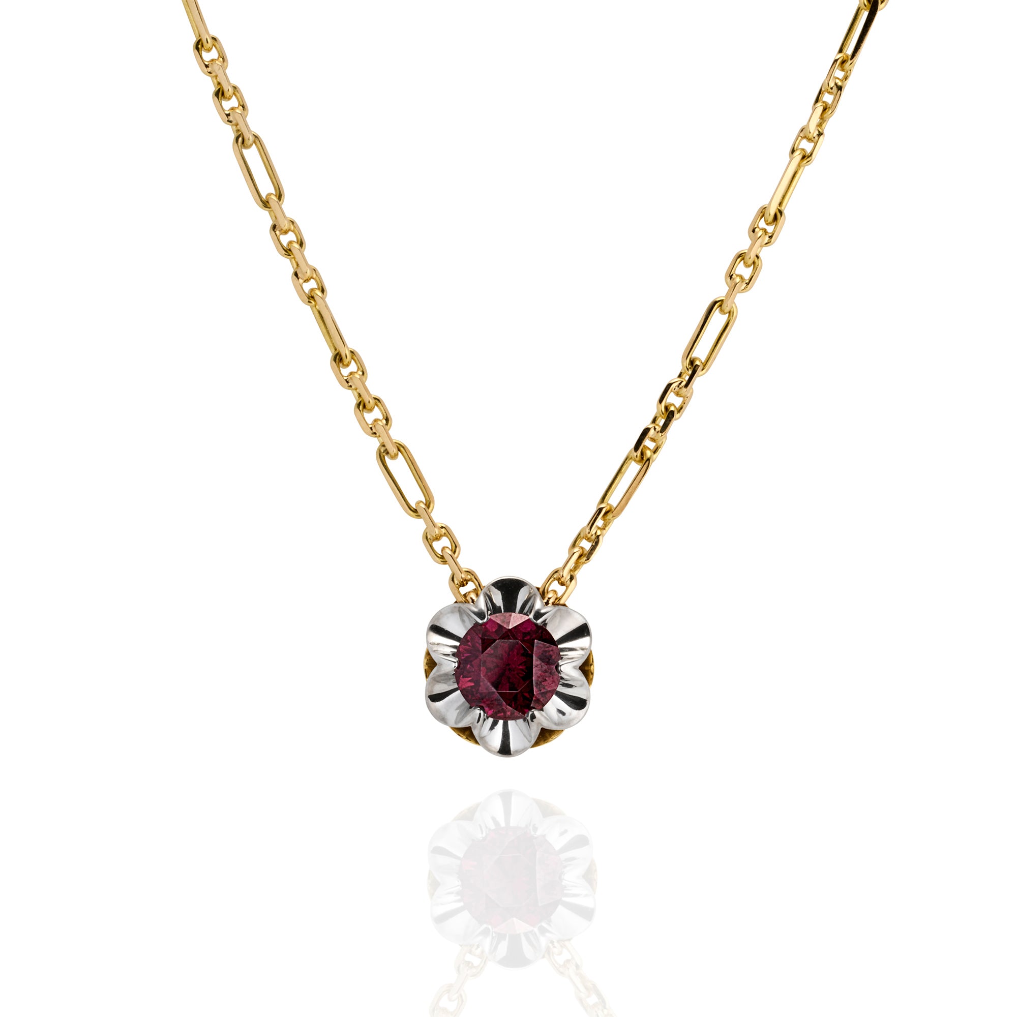 **One of a Kind** 18ct 3.39ct Round Red Spinel Scallop Necklace